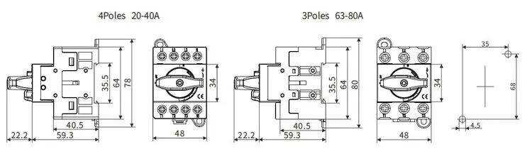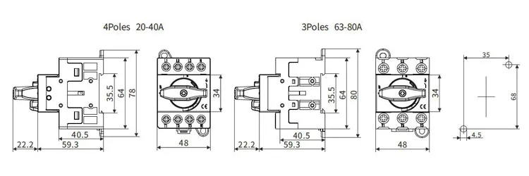 Interrupteur isolé CA 4P In:80A Poignée noire avec serrure