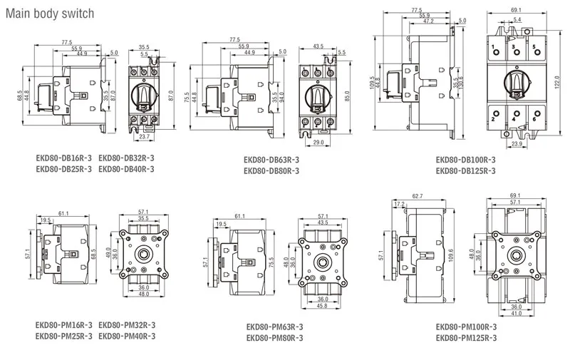 4P | EKD80-PM16R-4RY | EKD80-PM20R-4RY | EKD80-PM25R-4RY | EKD80-PM32R-4RY | EKD80-PM40R-4RY | EKD80-PM63R-4RY | EKD80-PM80R-4RY | EKD80-PM80HR-4RY | EKD80-PM100R-4RY | EKD80-PM125R-4RY |