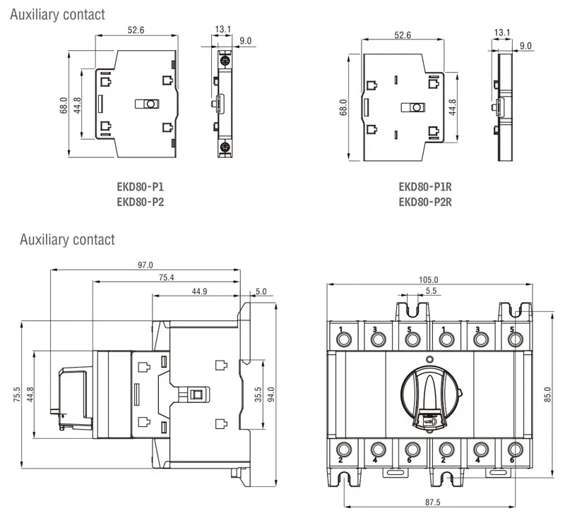 L'interrupteur d'isolement adopte le même auxiliaire contact, et le contact auxiliaire et le contact principal les pôles de l'interrupteur agissent en même temps. Un contact normalement ouvert avec pré-déconnexion la fonction peut être fournie selon les besoins. L'interrupteur d'isolement peut être installé avec jusqu'à à quatre accessoires auxiliaires (Environ 2 et 2 à gauche) | Le couvercle du terminal de l'interrupteur d'isolement a une conception simple conception d'apparence, PC transparent de haute qualité matériau ignifuge, haute résistance, aucun changement de couleur après une utilisation à long terme, de haute qualité, étanche et facile à installer. | Opération de contact simultané ou précoce du quatrième pôle par rapport à les pôles de l'interrupteur-sectionneur. |