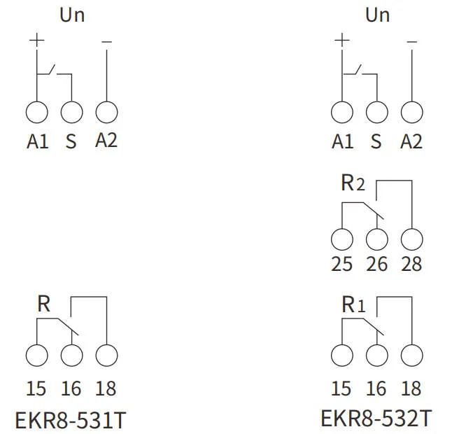 Les contacts R reviennent à leur état d'étagère lorsque la tension d'entrée U est supprimée.