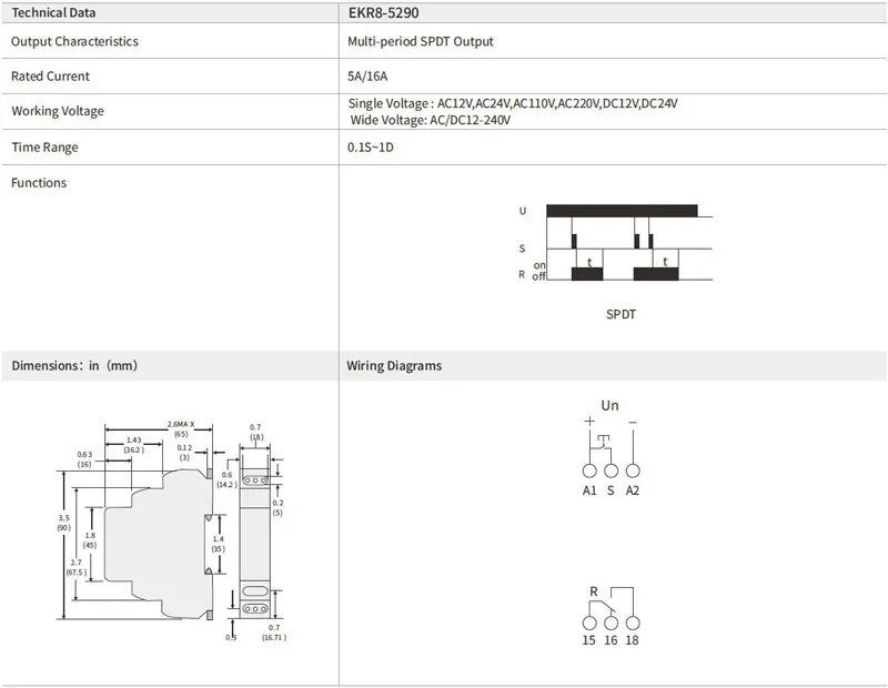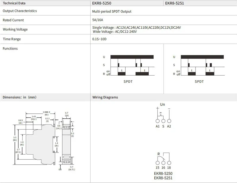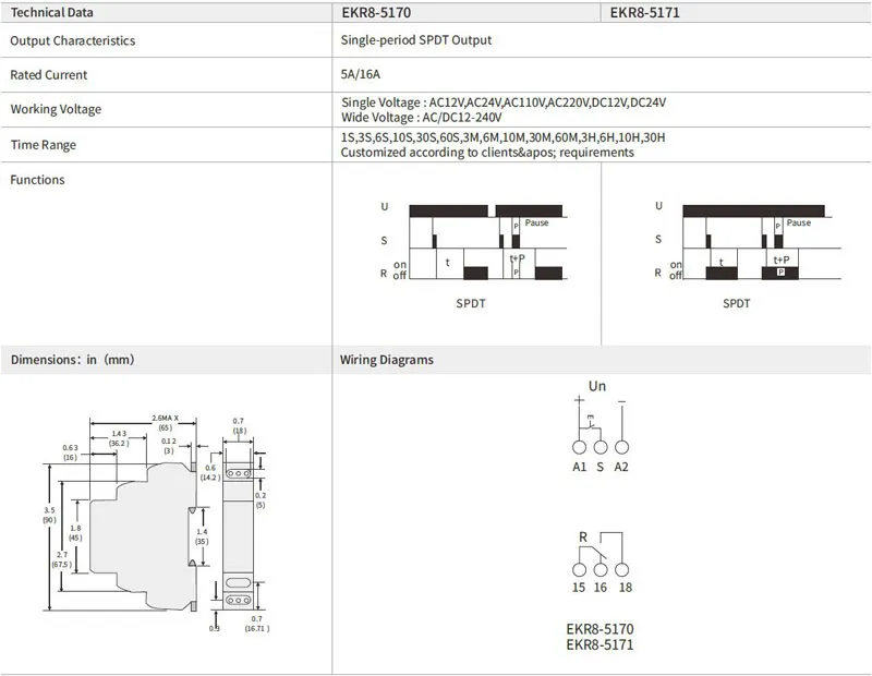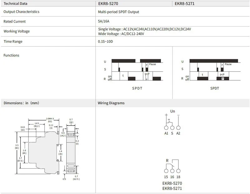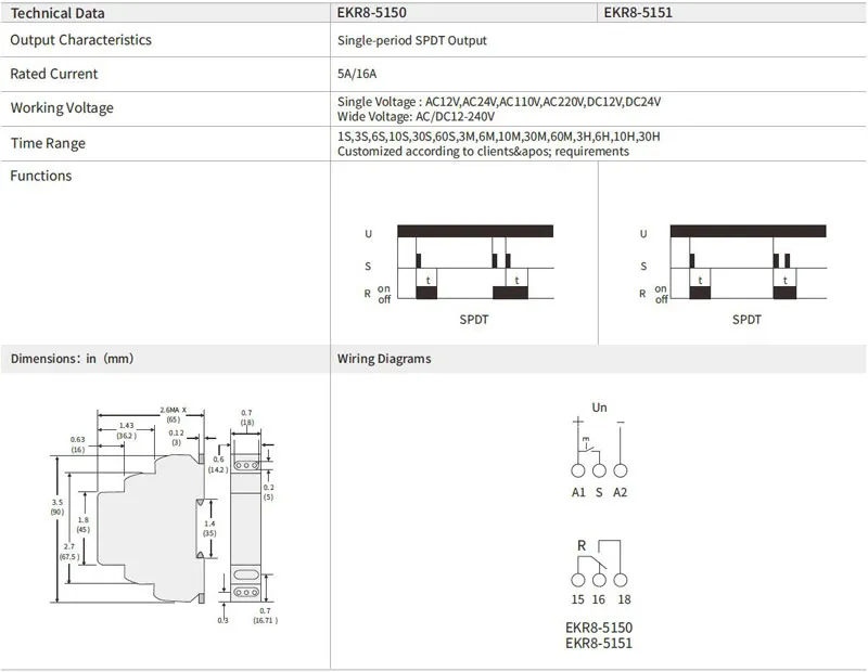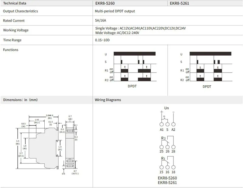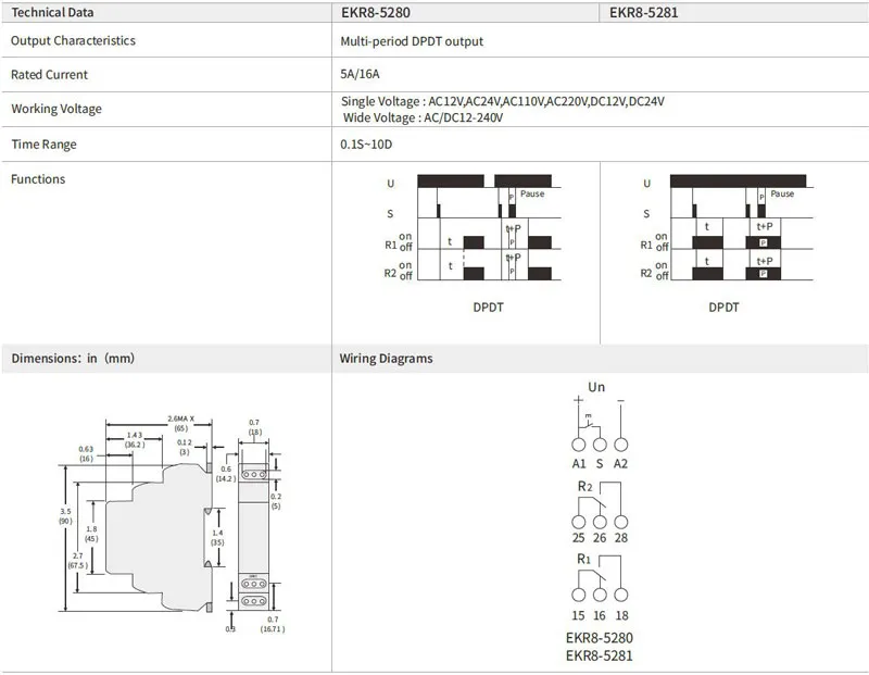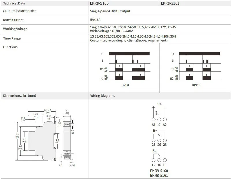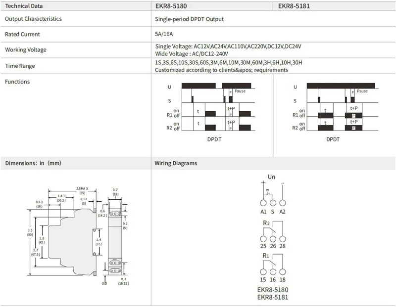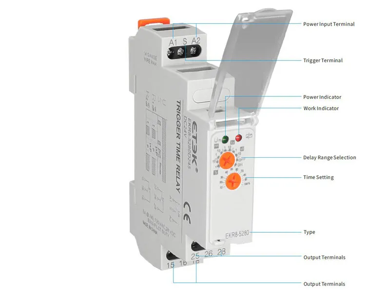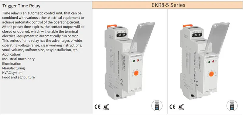 Relais temporisé SPDT/DPDT de type rail DIN série EKR8-5