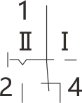 1. Lorsque la poignée atteint la position I : 1,5 et 2,6 sont connectés.