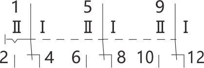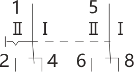 2. Lorsque la poignée atteint la position II : 1,5 et 4,8 sont connectés.
