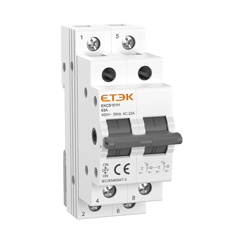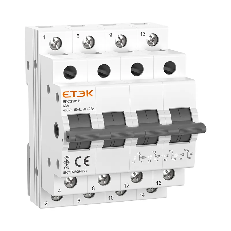 Le commutateur de commutation ETEK EKCS101H MCB est un type de commutateur à commande manuelle utilisé pour commuter la charge entre deux alimentations. Cet appareil peut atteindre un courant de fonctionnement maximal de 63 ampères. Il est couramment utilisé dans les industries ainsi que dans les zones domestiques, en particulier dans les bungalows individuels pour une utilisation dans les circuits de distribution basse tension. Le but du commutateur est de transférer l'électricité du réseau électrique commercial vers un générateur local en cas de panne. Il est également connu sous le nom de commutateur de transfert.