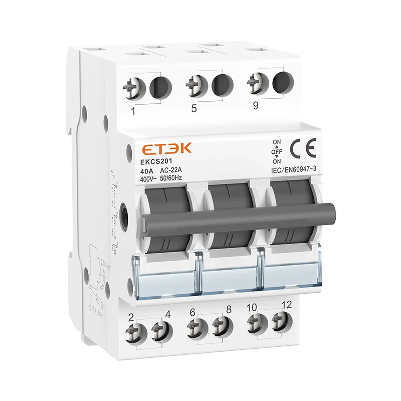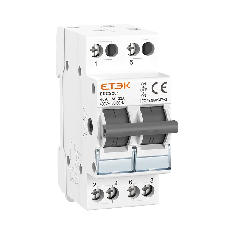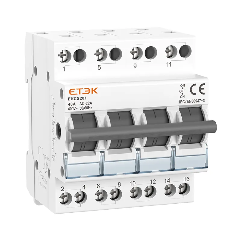 L'interrupteur d'isolement à conversion de puissance double monté sur rail EKCS201 a quatre fonctions de marche, d'arrêt, de conversion et d'isolement. Il peut être librement activé et désactivé entre deux charges transportées par un groupe de lignes ou sur deux sources d'alimentation. Il est utilisé pour la marche/arrêt et la commutation entre, en utilisant une installation sur rail standard DIN (35 × 7,5), la coque est fabriquée en moulage par injection PA66, avec des performances ignifuges élevées, c'est un produit idéal qui doit être utilisé pour la commutation et l'ouverture et la fermeture dans les équipements et circuits industriels. Le courant maximum peut atteindre 40 A, et il est pratique et sûr à installer et à câbler sur le rail de guidage.