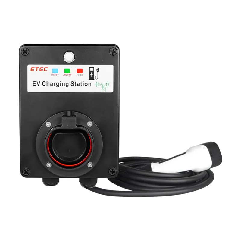 Le chargeur mural EKEC4 EVSE est adapté aux situations de recharge longue durée, telles que les zones résidentielles, les zones commerciales, les zones de bureaux, etc., et offre des services de recharge sûrs et stables pour les véhicules hybrides rechargeables et les véhicules purement électriques qui répondent aux normes. Ce produit peut être fixé au mur ou sur un poteau.