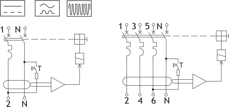 - Courant résiduel sinusoïdal pur CA, 50/60 Hz