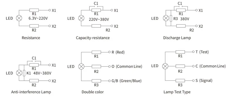 Test de lampe témoin LED 22 mm Blanc 110VAC/DC
