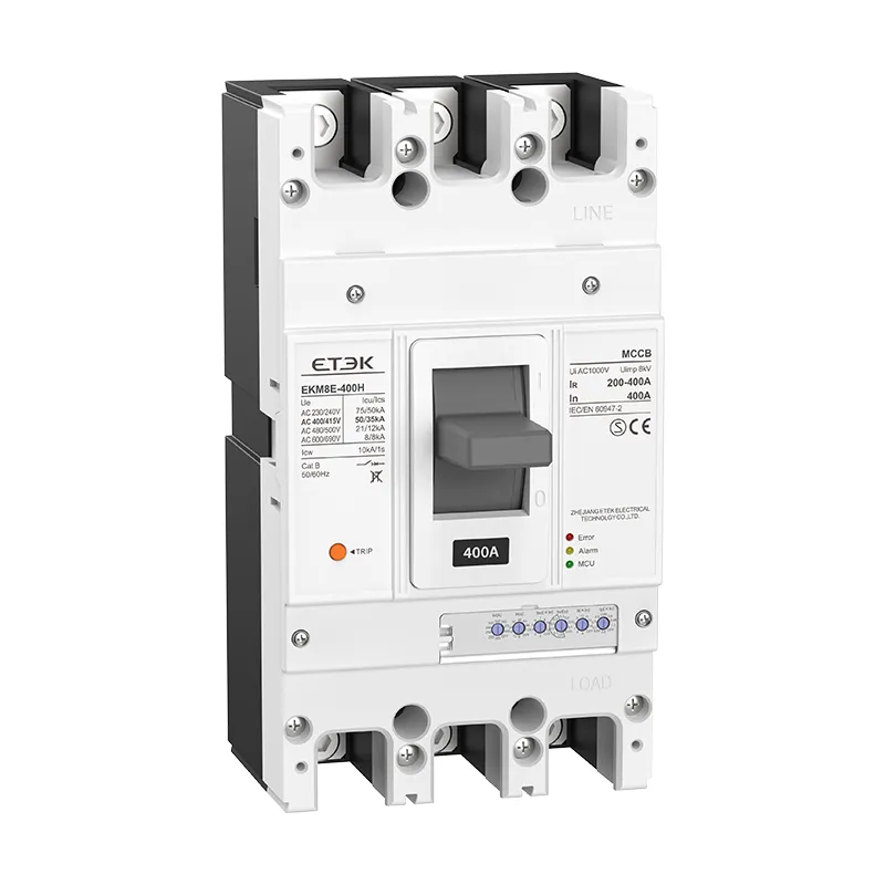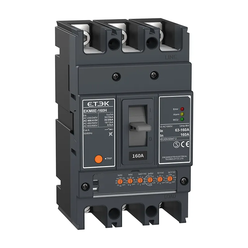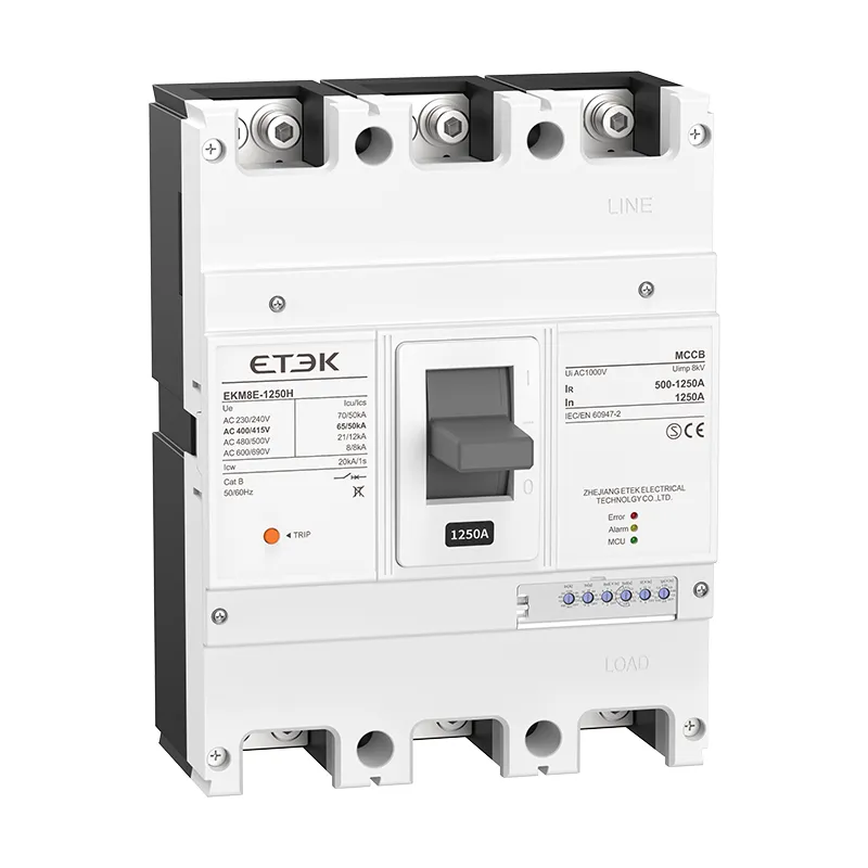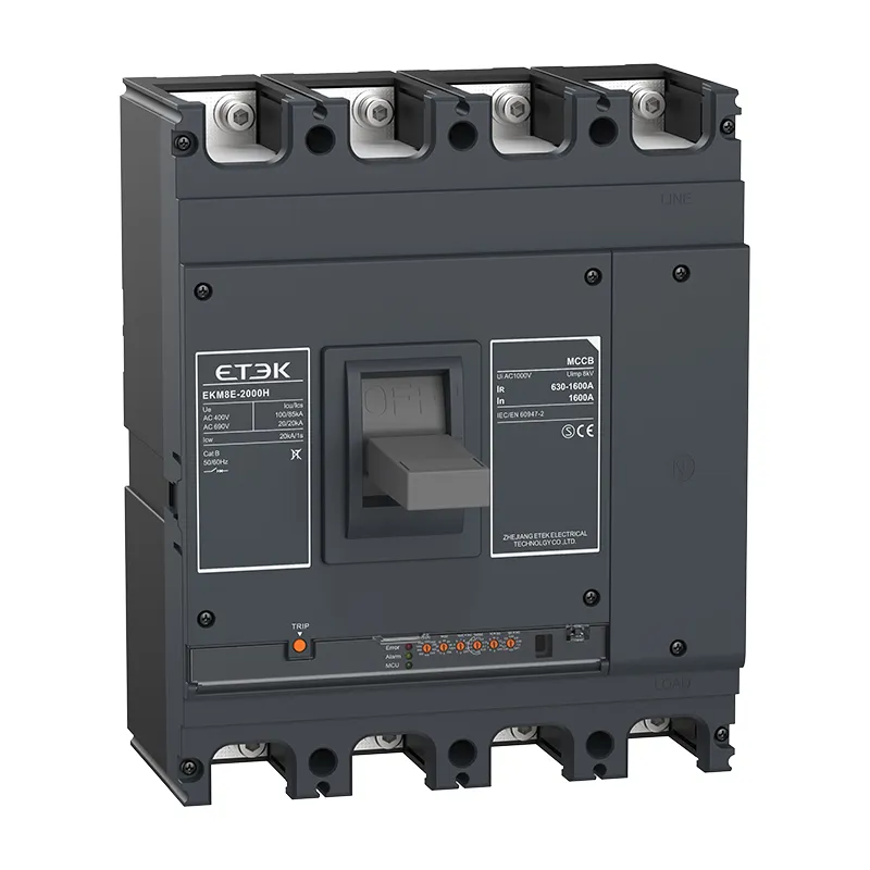 Les disjoncteurs électroniques de la série EKM8E sont applicables aux systèmes d'alimentation basse tension de 50 Hz CA, tension de fonctionnement nominale jusqu'à 1 000 V et courant de fonctionnement nominal de 32 A à 2 000 A.