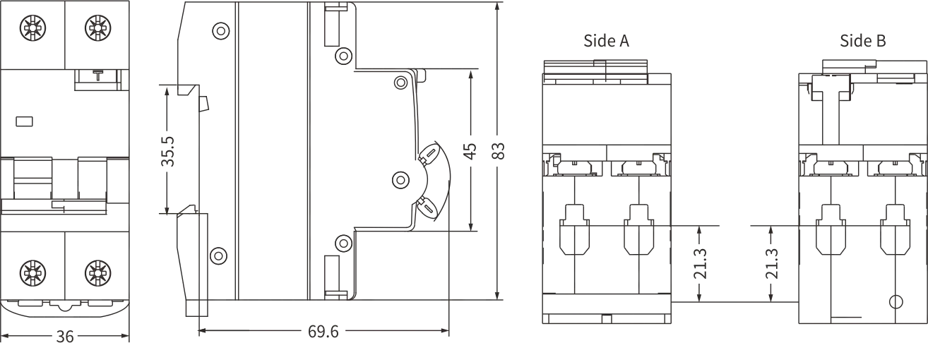 Disjoncteur différentiel de type magnétique EKL8-40M conforme à la norme IEC61009-1, capacité de coupure nominale 6 kA, courant de déclenchement nominal pouvant atteindre 300 mA, indicateur de position, terminaison bi-connexion des deux côtés, compatible avec tournevis à tête standard et Philip, borne 35 mm² adaptée aux câbles en cuivre et en aluminium.