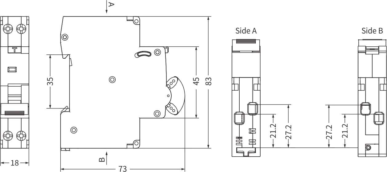Conception compacte : largeur de 9 mm par pôle, permettant d'intégrer davantage de circuits dans un espace de tableau de distribution limité.