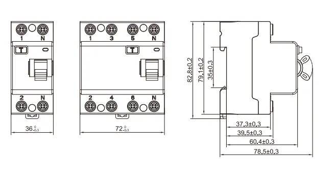 ● Pôles : 2P (1P+N), 4P (3P+N), pôle N à droite