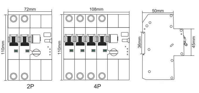 Protection automatique : Il effectue automatiquement l'auto-vérification de la fonction de protection contre les fuites à une heure fixe et dispose d'une protection contre les surtensions et les sous-tensions à réinitialisation automatique. Il est équipé d'une inspection automatique et, une fois les défauts éliminés, il se rétablit automatiquement sans affecter l'alimentation électrique normale.
