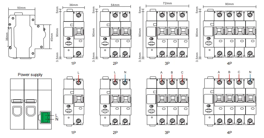 Le disjoncteur intelligent monophasé peut surveiller les paramètres de puissance et les paramètres de puissance en temps réel.